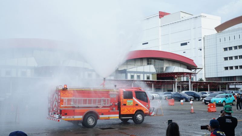 Selain itu, pengunjung juga dapat menyaksikan demonstrasi langsung penanganan kebakaran di area outdoor GIICOMVEC. Tim Damkar DKI Jakarta memperagakan simulasi penggunaan peralatan pemadam sekaligus memperlihatkan bagaimana kendaraan pemadam berbasis Hino dapat mendukung operasional secara cepat dan efektif di lapangan.